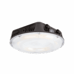 The LED Canopy Luminaire features a premium die-cast aluminum housing with a durable bronze or white powder-coat finish, designed for surface or optional pendant mounting. It features a switchable photocell for added energy control. The polycarbonate lens and selectable CCT (3000K/4000K/5000K) pair with five adjustable lumen outputs delivering 3,171–11,682 lumens. Sensor-ready design supports screw-in controls for advanced motion or daylight operation. With IP65 and IK10 ratings, it’s ideal for wet and rugged environments.